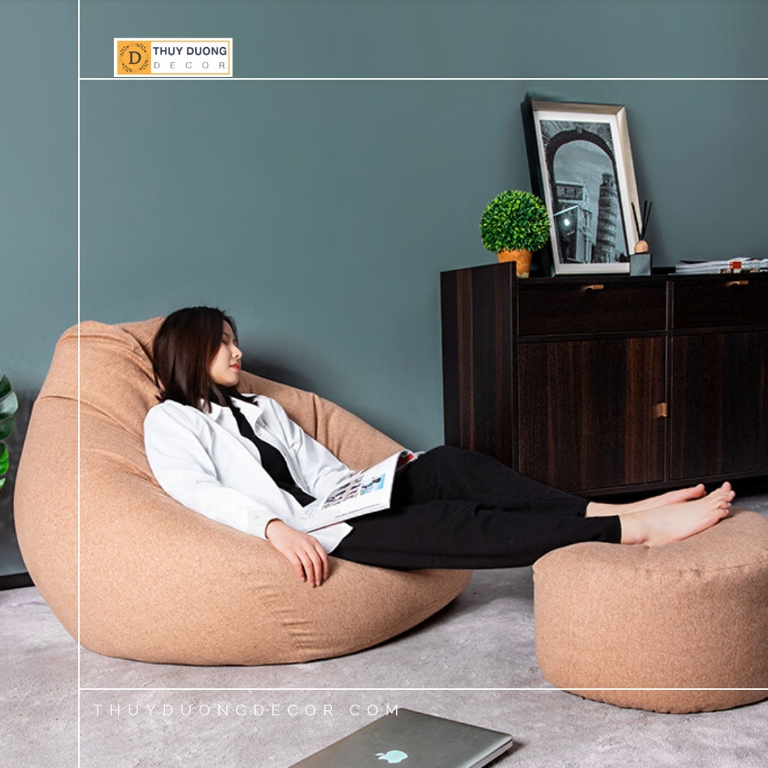 Ghế lười hạt xốp-màu sắc trung tính-không gian trẻ trung, hiện đại