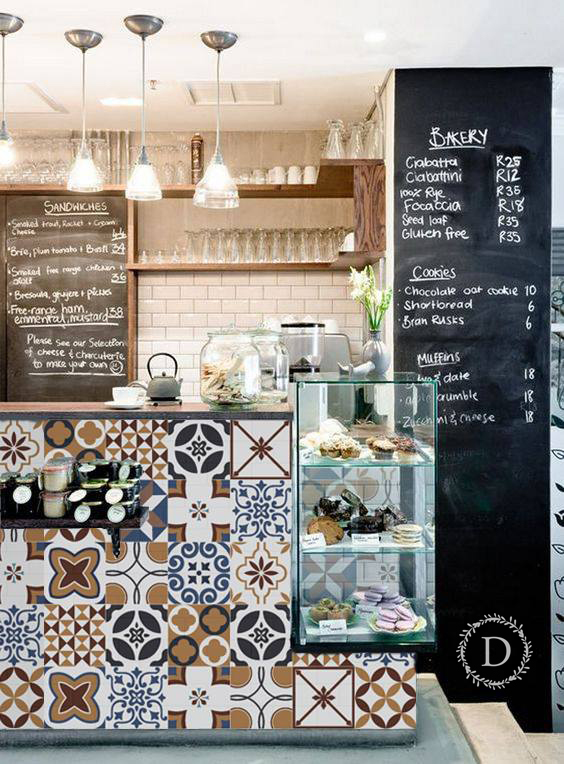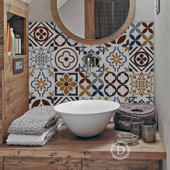 (y) Giấy dán gạch bông có thể trang trí lên mọi nơi, chỉ cần bề mặt nhẵn, không quá ghồ ghề.