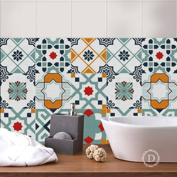 (y) Giấy dán gạch bông có thể trang trí lên mọi nơi, chỉ cần bề mặt nhẵn, không quá ghồ ghề.
