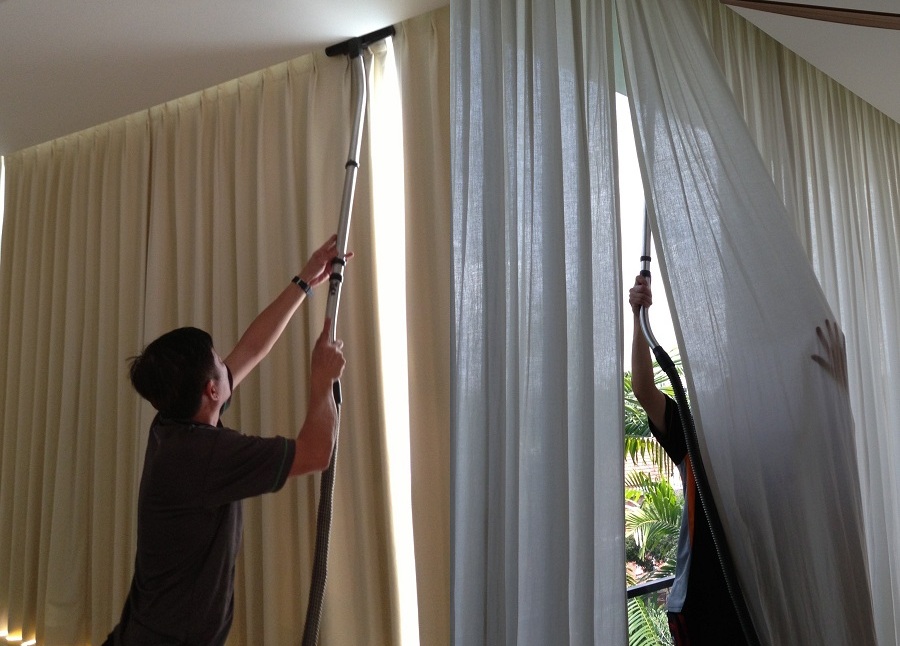 - Nếu rèm cửa nhà bạn làm từ loại vải mỏng, mềm như tơ lụa thì sau khi tháo xuống bạn nên giũ nhẹ để loại bỏ bớt bụi bẩn trước hoặc sử dụng máy hút bụi để vệ sinh thường xuyên;