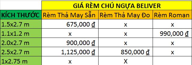 Bảng giá các kích thước của các loại Rèm Chú Ngựa Beiver
